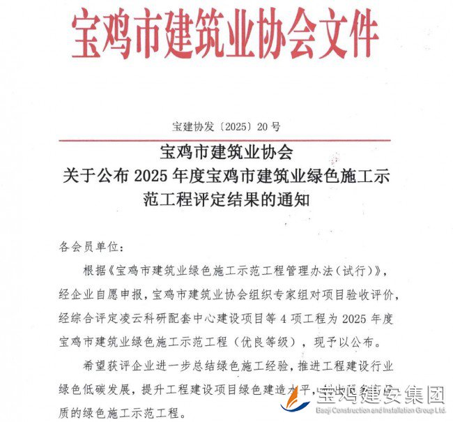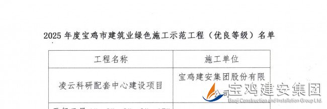公司承建的凌云科研配套中心建設項目榮膺“2025 年度寶雞市建筑業(yè)綠色施工示范工程”稱號