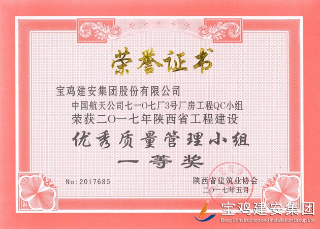中國航天公司七一0七廠3號(hào)廠房工程QC小組