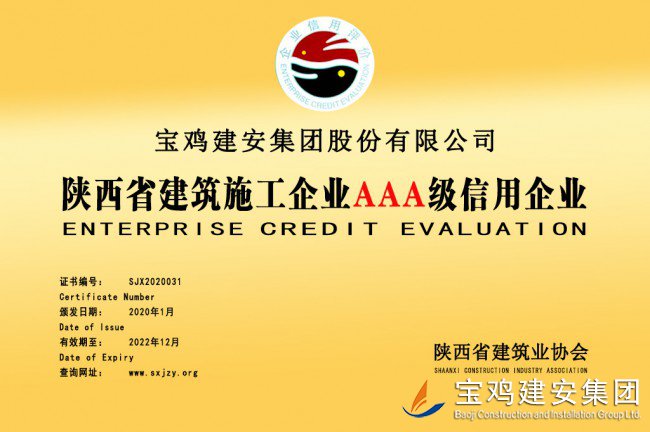 陜西省建設(shè)施工企業(yè)AAA級信用企業(yè)